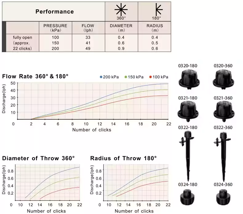 旋转 Mini Bubbla 盖可以同时调节流量和喷射直径。这款可调流量 Twista 喷雾器具有均匀的伞形图案,可将水轻轻地喷洒到植物的根部区域。