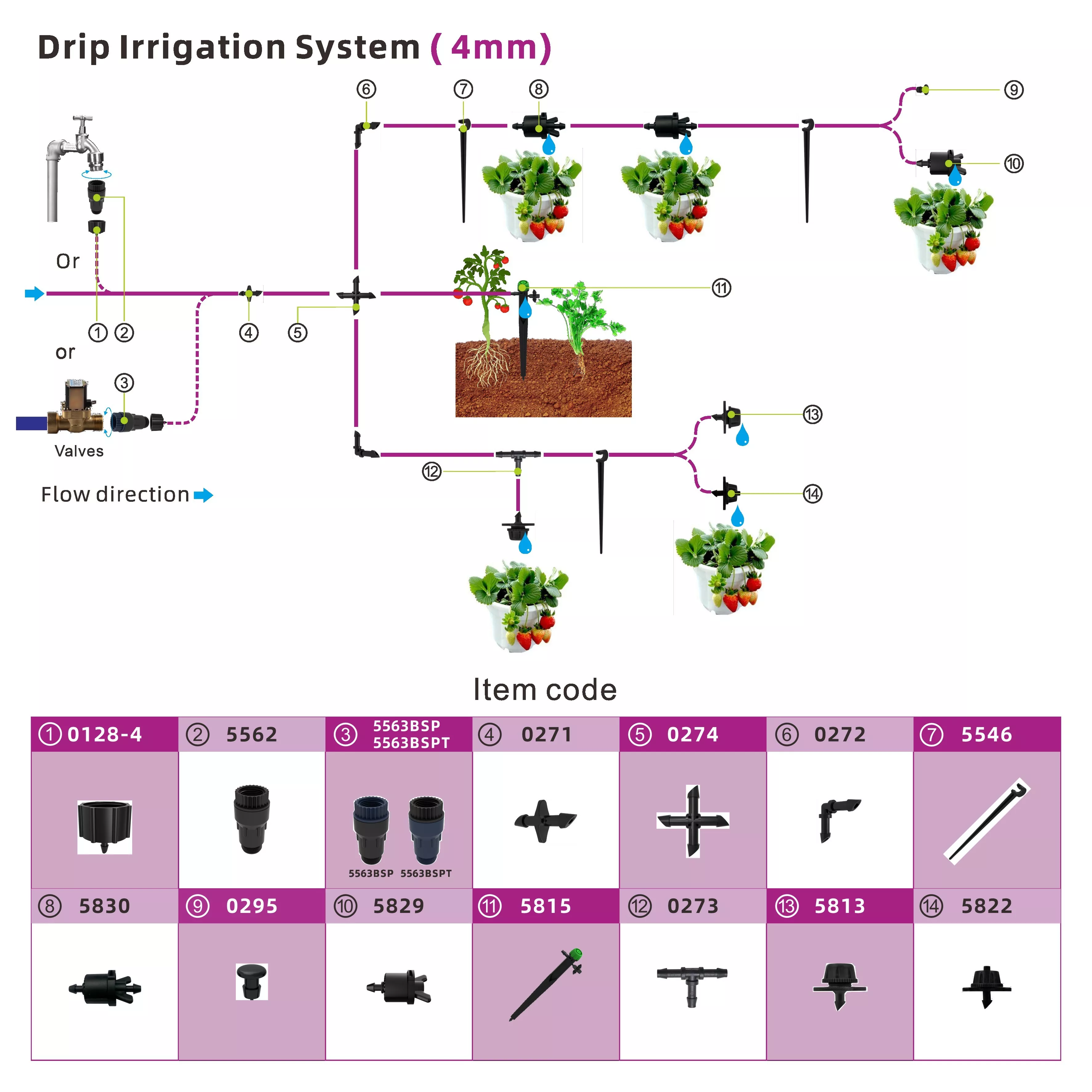 3、PC倒刺滴头系列:2升/小时、4升/小时和8升/小时,带4毫米喷嘴。