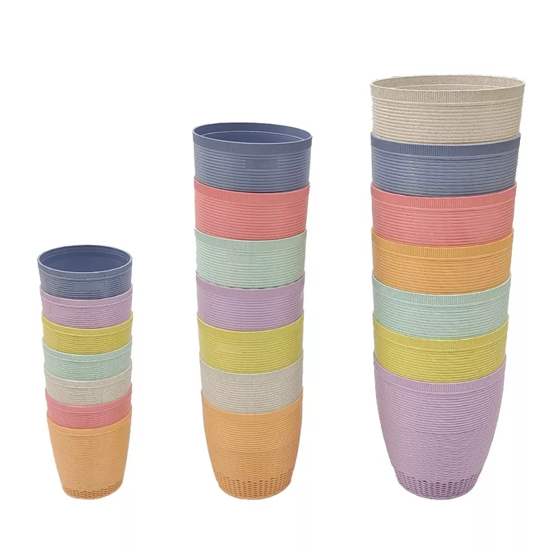 8 件套麦秆塑料花盆包括餐具套装,包括:6 英寸*2 件、5 英寸*2 件、4 英寸*4 件