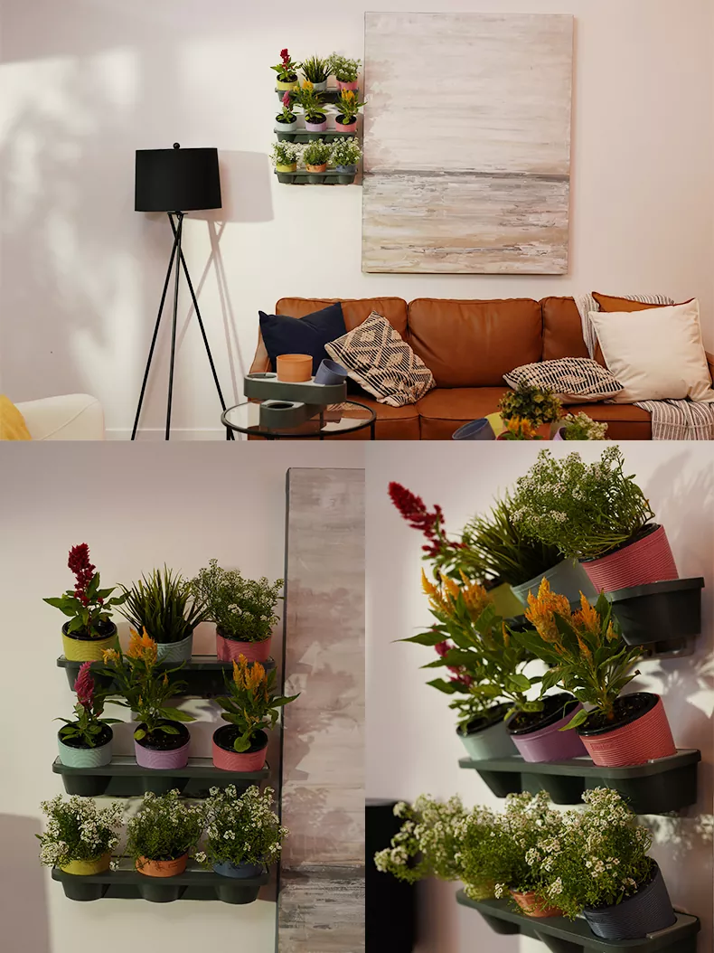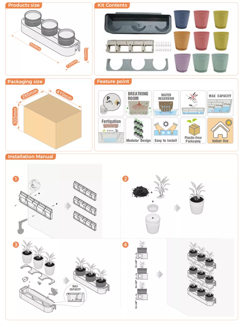 垂直园艺是一种流行的节省空间的园艺方法,可以在狭小的空间内种植植物。 Watex 麦秆塑料垂直花园是城市居民在家内外创建垂直花园的理想壁挂式花盆。