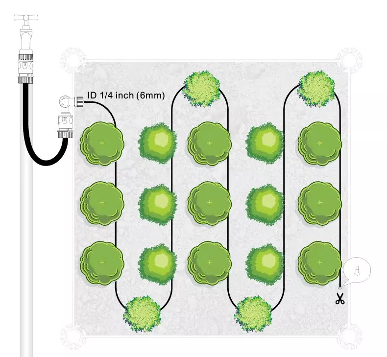 无需复杂的工具,无需阅读使用手册,GARDEN BED SOAKER HOSE KIT 的 5 米软管长度正好适合大多数家庭种植床。无论是长形菜地还是方形种植箱,铺设后即可使用。三路连接器和适配器均已预先匹配。只需将它们对准接口,插上螺丝即可固定,即使是女孩也能独立完成。整个灌溉设置只需 10 分钟即可完成。
