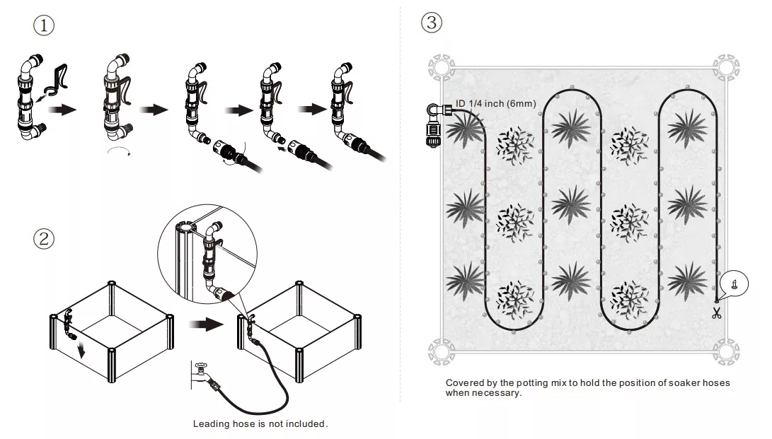 GBIK-01 花园床浸水软管套件 轻松打造高效便捷浇水适合您花园床的系统 非常适合高架花园床 只需几分钟即可完成设置,然后将其留在原处,以便轻松完成整个季节浇水