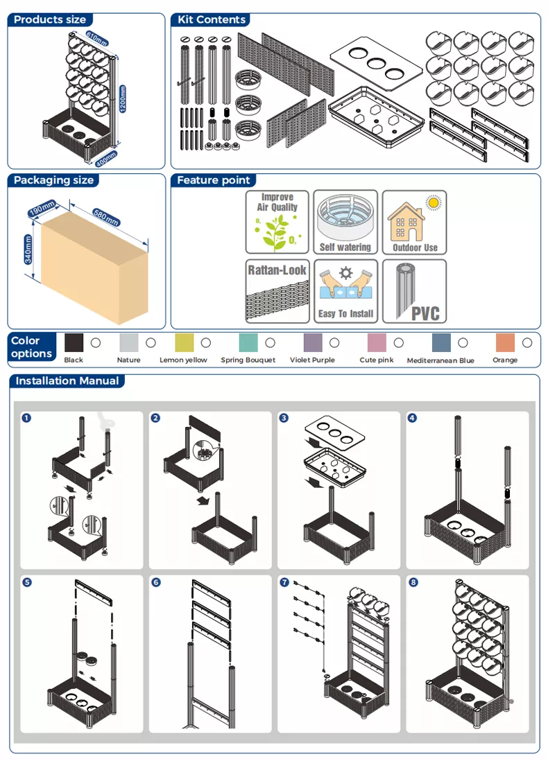 ● 无需在墙上钉钉子,即可将任何墙壁变成美丽的垂直花园。