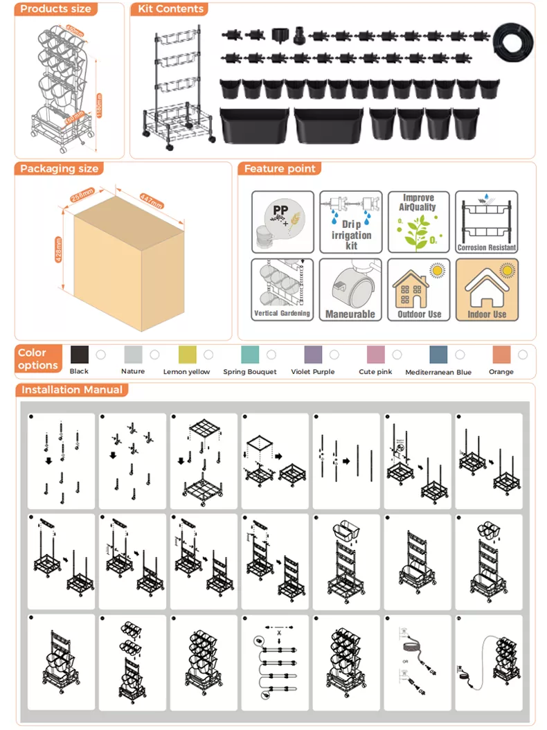 我们的金属移动绿墙双框架非常适合城市生活,是满足您所有城市园艺需求的朋友。这种带有完整灌溉系统的多层花盆的便携性使其成为节省空间的园艺的理想选择。种植你最喜欢的香草、蔬菜或花卉,或者添加一些空气净化植物来净化你家中的空气,并将它们移到你去的任何地方。